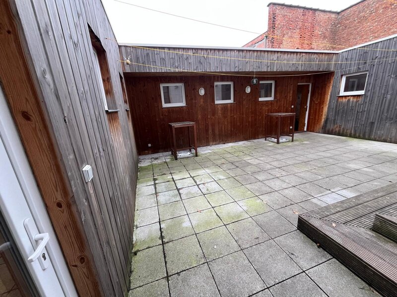 Huis met grote atelierruimte, 3slaapkamers en zonnig tuinterras te koop in hartje Gentbrugge.