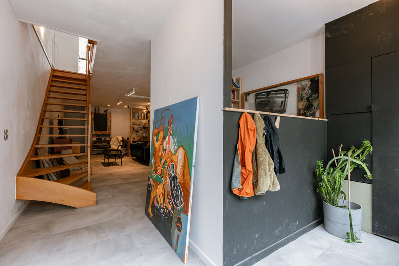 Bij binnenkomst op het gelijkvloers tref je meteen een handige fietsenberging aan – ideaal voor stedelijke mobiliteit. Verder vind je er een praktische wasplaats/berging achteraan en een eerste gastentoilet. Er is ook een multifunctionele ruimte die je volledig naar wens kan inrichten als bureau, hobbykamer, thuiskantoor of zelfs extra leefruimte.