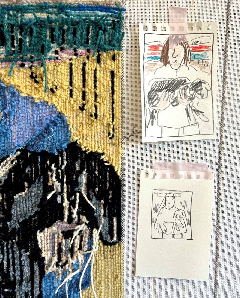 De keuze voor een bepaalde techniek ontstaat doorgaans spontaan en organisch. Meestal vertrek ik vanuit de goesting om te werken in een bepaald medium: textiel, potlood, verf, inkt, mijn iPad... Eens ik dat medium een beetje heb doorvoeld tijdens een dag in mijn atelier, ga ik aan de slag met de inhoud die mij op dat moment bezighoudt en waarvan ik mij wil bevrijden.
