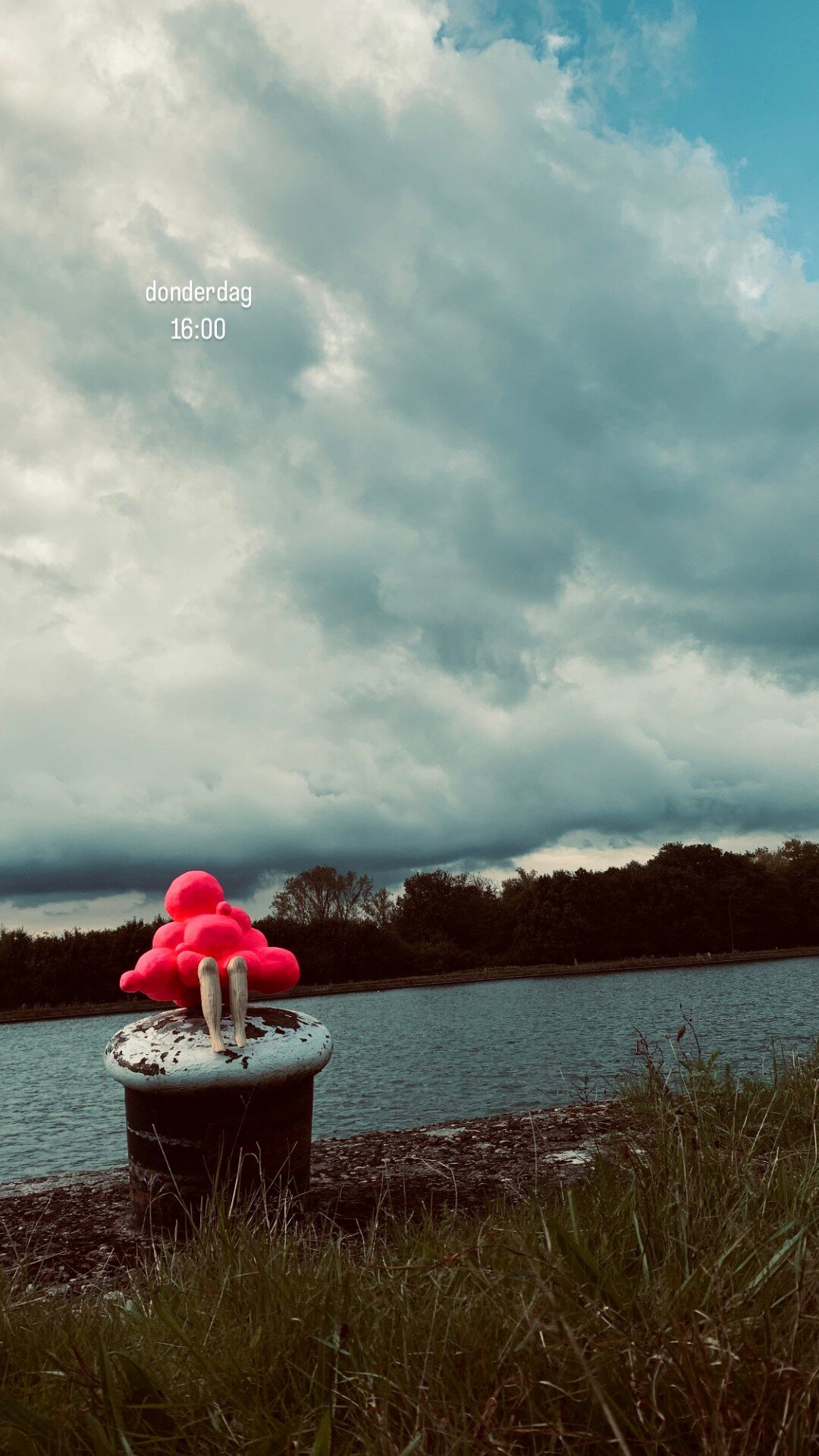 Marijke: ‘Dit werk maakte ik tijdens een intense periode. Ik werd na een eerste miskraam al gauw weer zwanger. Hoewel ik daar heel blij om was, waren die eerste weken een heel onzekere periode. De roze wolk van de zwangerschap ervaarde ik eerder als een broze wolk, een zeer fragiele geluksbubbel. Toen ontstond dit werk. Mijmerend leefde ik van dag tot dag. Ik ging met het werk op pad, met deze fotoreeks als resultaat. Toen ik die foto’s zonder verdere uitleg op Instagram deelde, kreeg ik er veel reacties op. De broze wolk bleek een herkenbaar beeld om de fragiliteit van een geluksgevoel weer te geven. Een manier om stil te staan bij de kwetsbaarheid van onze allermooiste momenten, en bij de voorbijgaande aard daarvan.