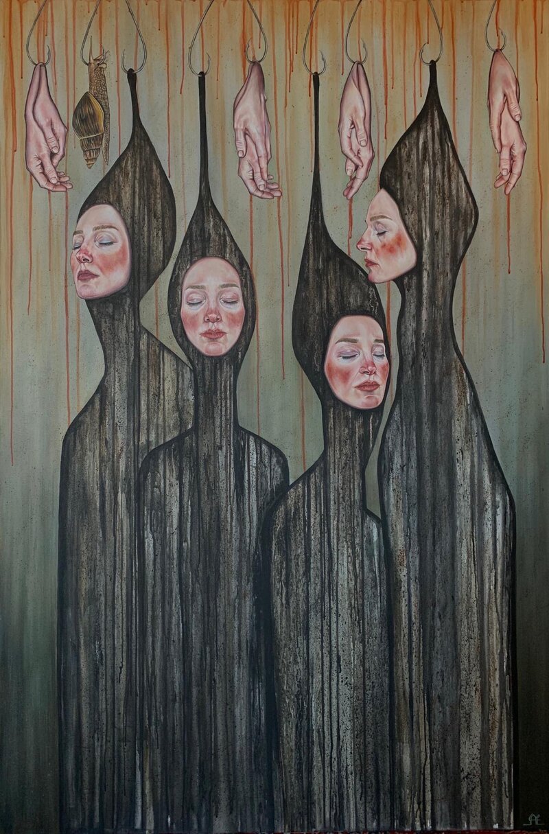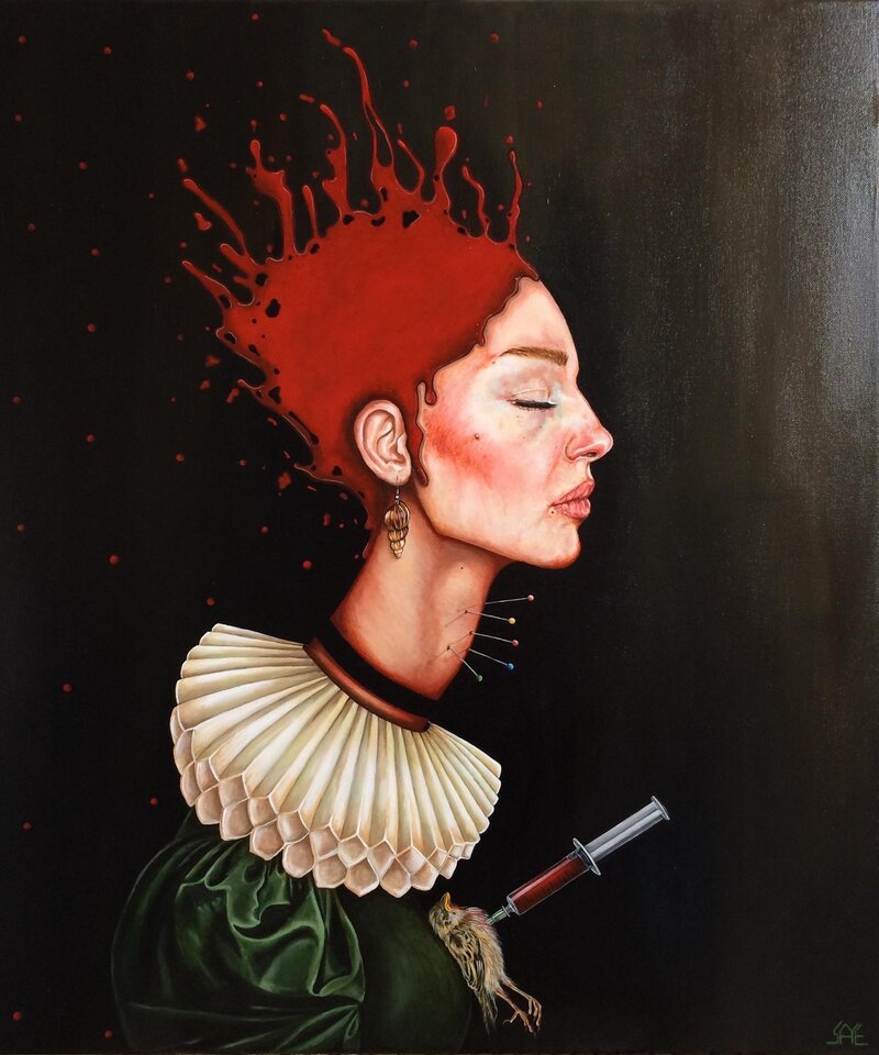Sara Aref is een Iraanse kunstenares die woont en werkt in Brussel. Ze deelt haar schilderij 'Her blood-stained hair' met ons. 'Dit schilderij is opgedragen aan Mahsa Jina Amini. Het is een weerspiegeling van verdriet, woede en de stilte die ons wordt opgelegd. Her blood-stained hair was de luidste stem die ik kon schilderen, het enige protest dat ik op doek kon uitdrukken. Ze leeft en zal altijd voortleven in onze harten, onsterfelijk, onvergetelijk en vrij.'