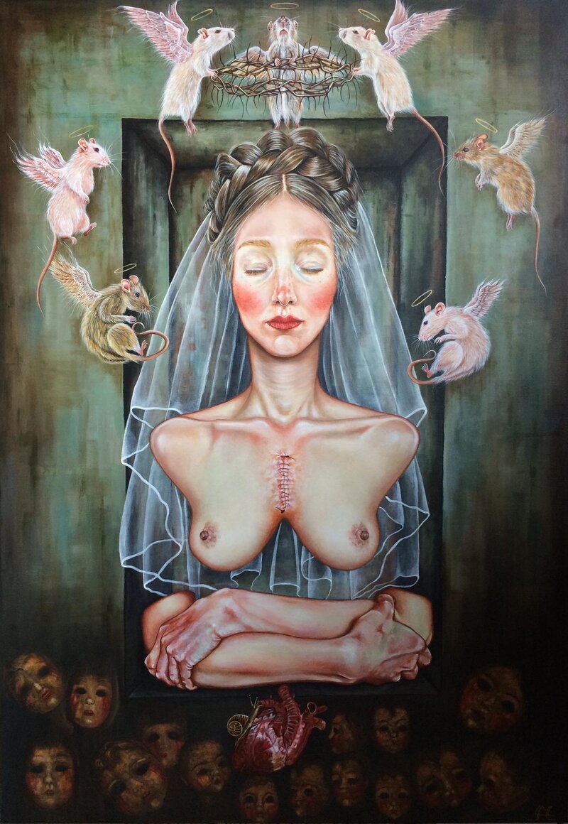 Farnaz Ghafouri is een Iraanse illustrator en architecte, die momenteel in Antwerpen woont. Het geweld in Iran laat haar teruggrijpen naar haar werk What heals isn't loud: 'Met dit werk onderzoek ik het belang van zachte verwerking en de vertaling van onderdrukte emoties en trauma's naar een visuele taal. In Iran heerst momenteel onderdrukking en geweld. De mensen houden er niet alleen stand door middel van zichtbare protestacties, maar ook door stil verzet in hun innerlijke wereld. Ze zien hun angst onder ogen, ze gaan elke dag door en doen zo een poging om innerlijk te helen. Deze werken vertegenwoordigen een zoektocht naar verwerking die van buitenaf misschien stil lijkt, maar van binnen zeer diepgaand is.'