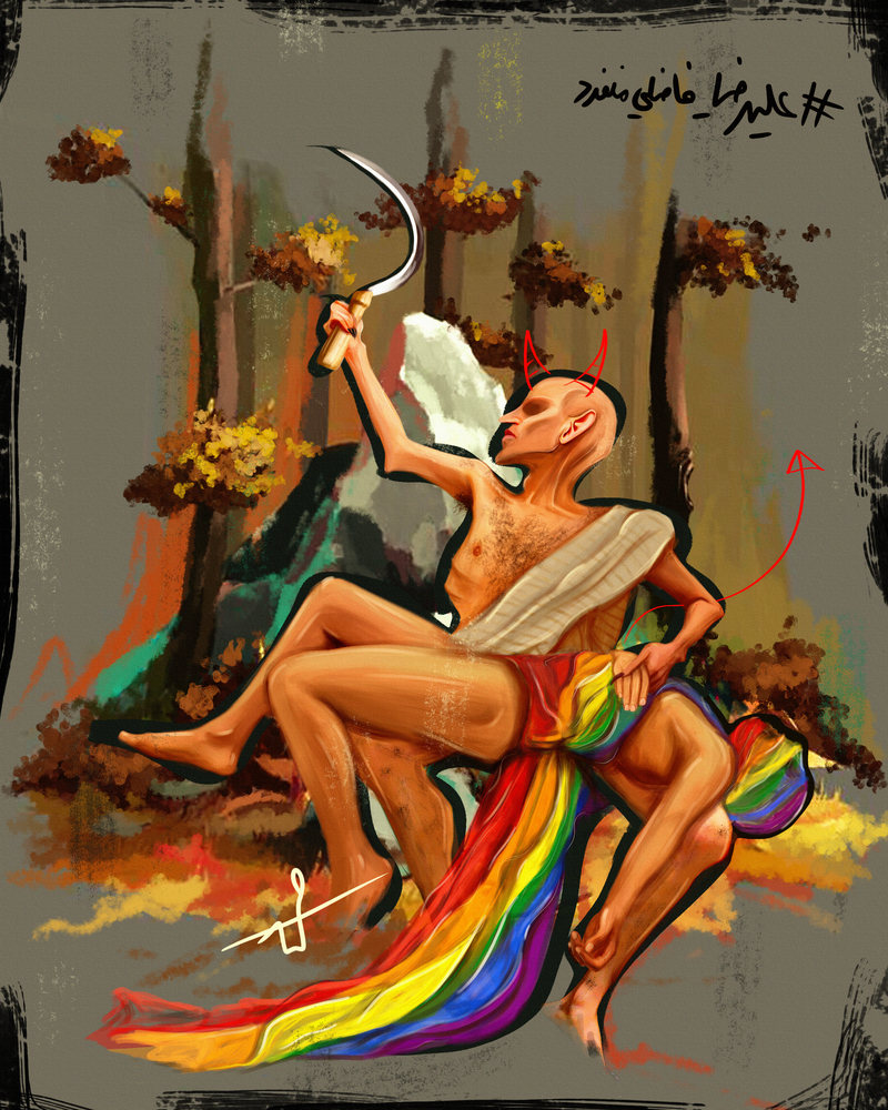 Luckybamero maakt sterk verhalend, digitaal werk dat vaak vertrekt vanuit eigen ervaringen als queerpersoon in Iran. Het digitaal schilderij The Murder of Alireza Fazeli Monfared is een antwoord op het geweld, maar ook op de stilte rond de moord op Alireza Fazeli Monfared, een jonge gay man uit Iran: 'Alireza Fazeli Monfared werd brutaal vermoord in mei 2021, en dat door zijn eigen familie. Dit werk is een eerbetoon, maar ook een daad van verzet. Het gaat over het geweld dat queermensen in Iran wordt aangedaan. Niet alleen door de staat, maar ook door families die getekend zijn door angst, tradities en systematische onderdrukking. Schilderen is een vorm van verzet tegen het vergeten: een manier om te herinneren en te getuigen.'