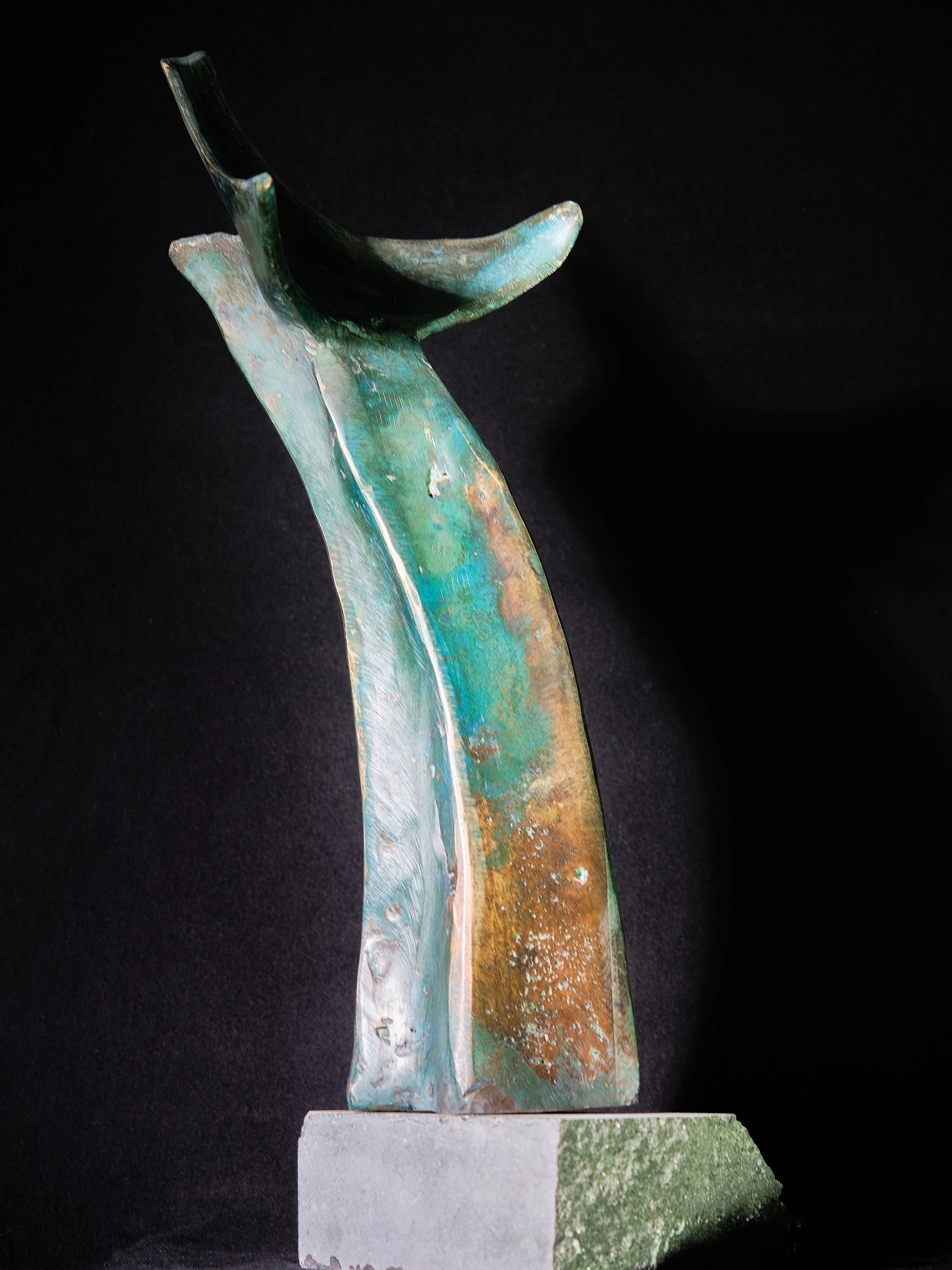 De patine van zijn bronzen beelden laat hij aan het toeval van de natuur over: het zijn de Ammoniak dampen die het bronzen beeld zijn finale patine-kleur geven