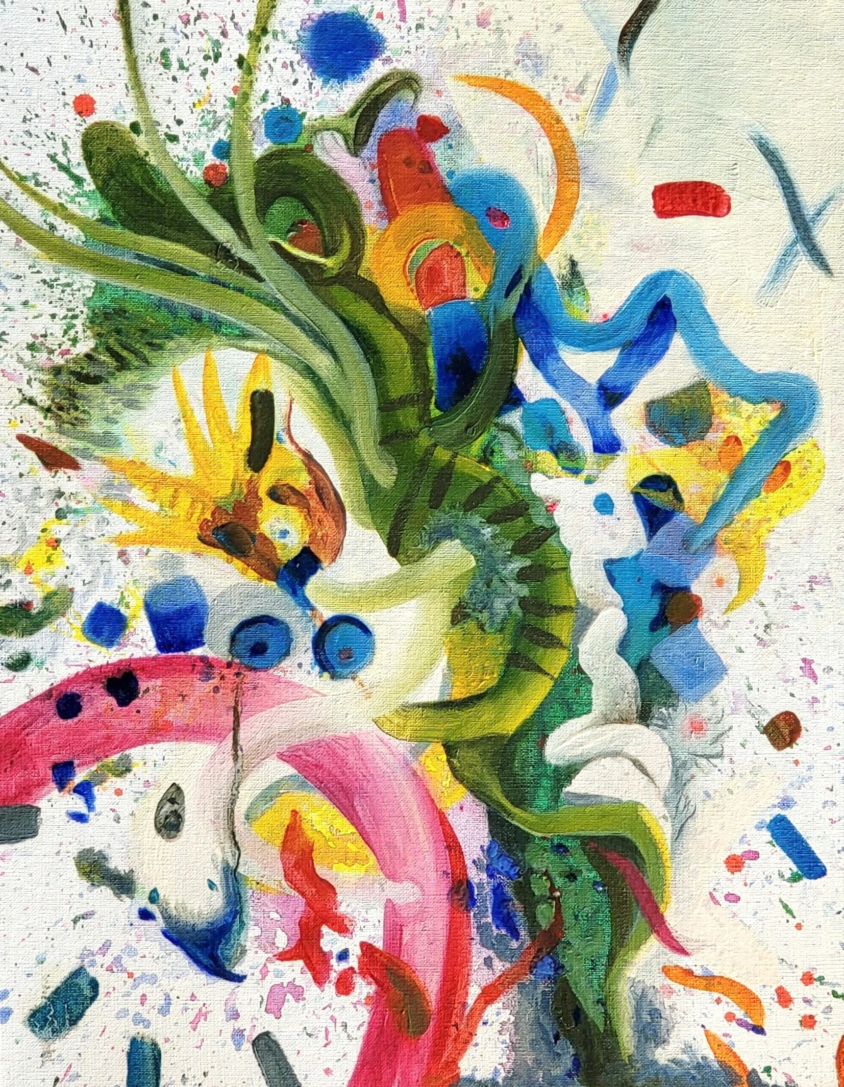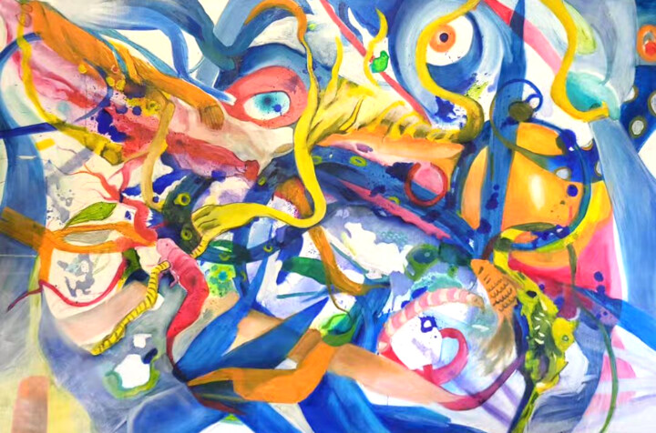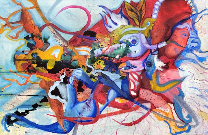 In her paintings, Eefje Van den Brande always starts from a blot on which she lets her imagination loose. She wants to play with the image, using various techniques and layers. A mix of acrylic and oil paint always produces surprising results.