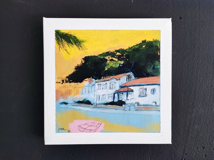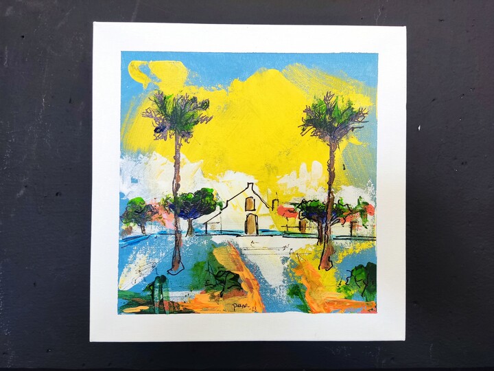 In de prille jaren 1960 begon ik als kind te schilderen en nog steeds werk ik gevoelsmatig en met een fel kleurenpalet. Ik signeer met pano.