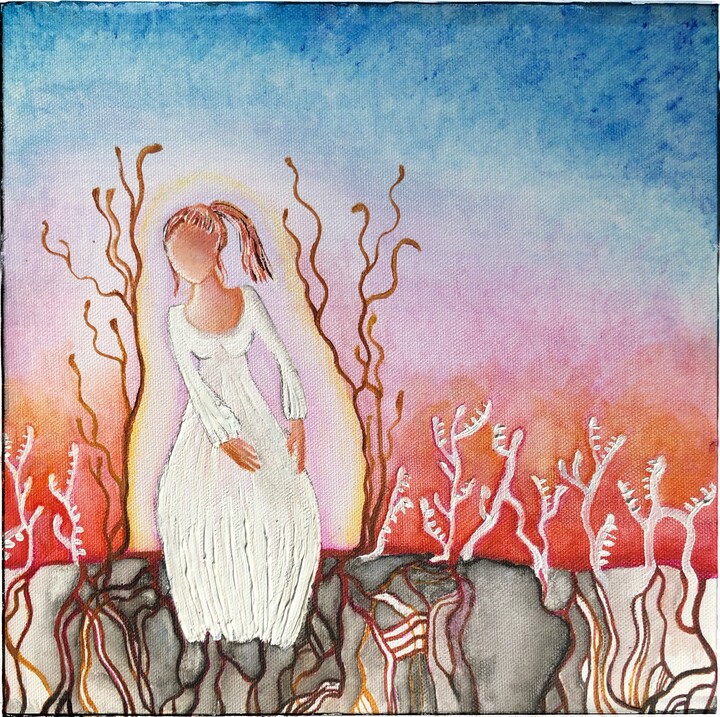 Utopian places: From organic lines, I let reality disappear. From detailed fantasies & harmonies... . Dreaming endlessly, escaping reality. Making the impossible possible. Dreaming, escaping... fleeing, venting... mixed media on wood 50/50cm