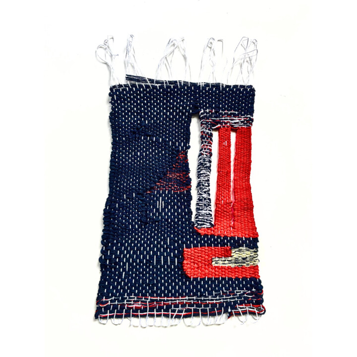 Ik werk graag met restanten en gerecycled materiaal. Ook dit project bestaat uit tweedehands garen en vodden van afgedankte kleding. De werkjes zijn geweven op handweeframen van ongeveer 30 bij 40 centimeter: kleine tapisserie-weefsels die ik op mijn eigen manier vormgeef. Vaak begin ik met een eenvoudige linnenbinding, waarbij ik intuïtief steken oversla. Het garen bepaalt de structuur – ik volg, observeer en reageer.
