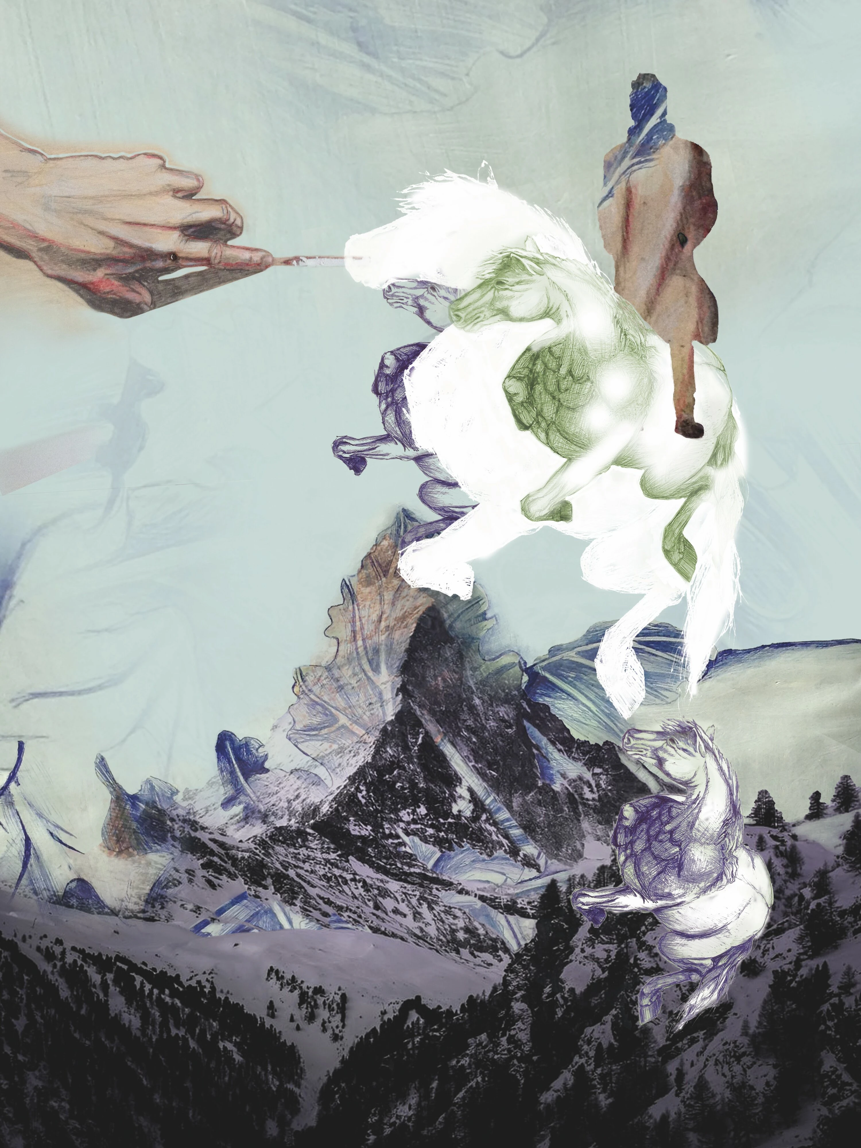 Mijn werken zijn digitale collages van eigen foto’s en tekeningen. Ik druk ze af op papier en breng ze vervolgens in het straatbeeld door ze aan de aanplakzuilen of affichepanelen te plakken. Roept een bijna anoniem kunstwerk dezelfde oh’s en ah’s op in het straatbeeld als in een galerie? Dit werk is gemaakt vanuit een kleine drang om grote kunst los te trekken uit een elitaire positie.