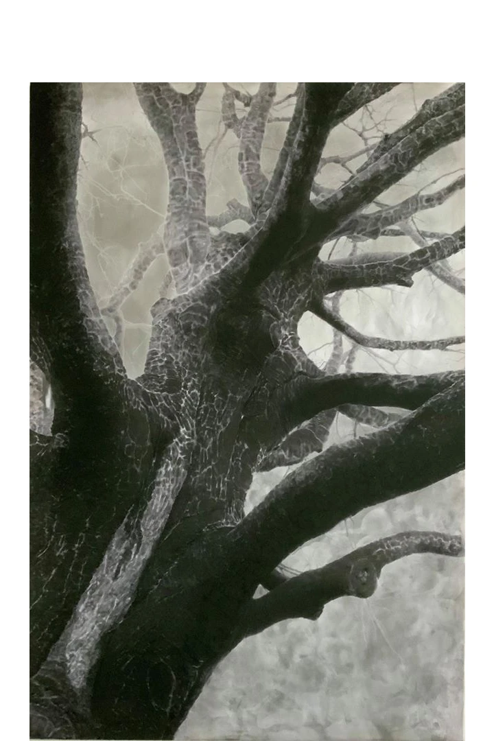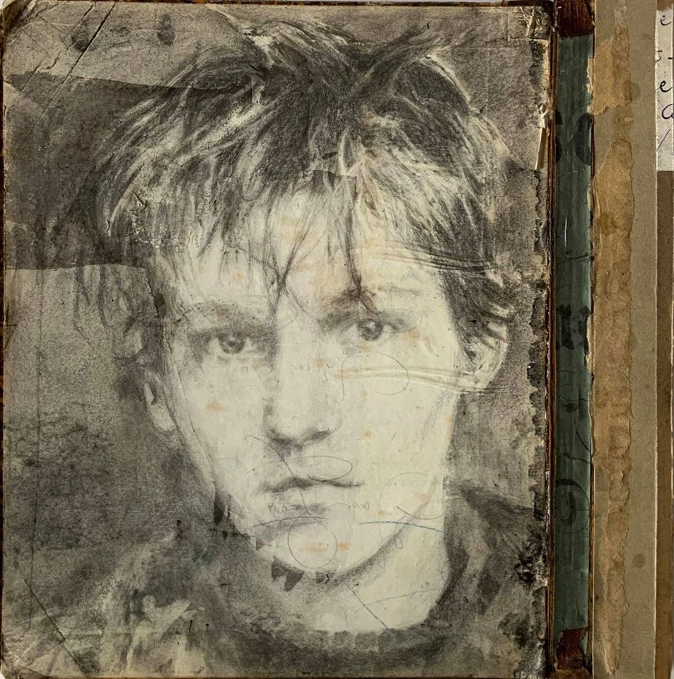 Dit werk maak deel uit van een nieuwe reeks. Oude prenten worden eerst bewerkt door Christian met verf , wegkrassen. Graphite enz… Ik laat me inspireren door wat ontstaat, wat achterblijft en maak een project op tablet met foto’s die we zelf gemaakt heb of uit magazines. Als de maquette voldoet aan onze beeldtaal, een verhaal dat past bij onze wereld, wordt het de basis van een tekening die ik maak met houtskool en/of potlood. Soms wordt het nadien terug bewerkt door Christian. Het doel is altijd een beeld, een atmosfeer creëren die bij de kijker een verhaal oproept. Een verhaal, en dat vinden we cruciaal, dat door door iedereen anders ingevuld wordt.