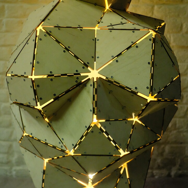 Deze kunstinstallatie is een koepel die constructief is opgebouwd uit een ringbalk en de Surface Hinge Theorie.