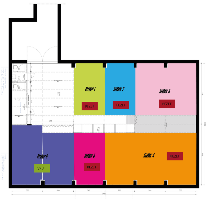 - Atelier wordt verhuurd door Kint Pianos, een toonzaal en piano-atelier. Er is doorloop door vier werknemers om de achterdeur te kunnen gebruiken.