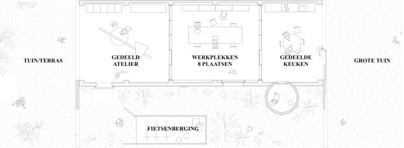 - Gebruik van gedeelde keuken, atelierruimte en collectieve tuin